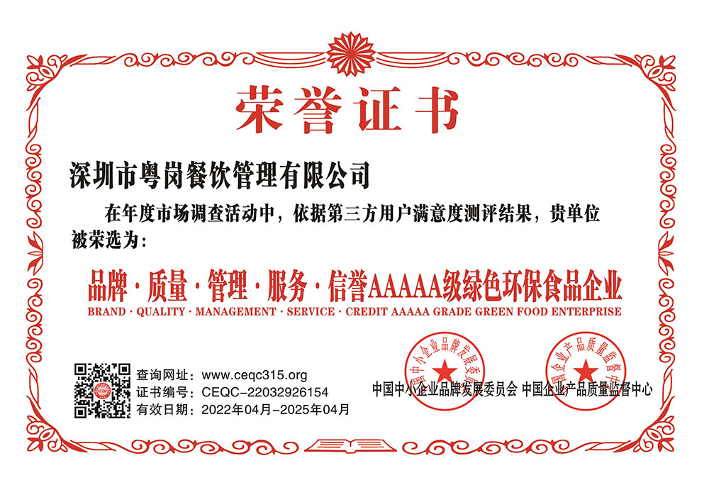 深圳市粵崗餐飲管理有限公司,是一家集蔬菜種植和農副產品配送為一體的專業型餐飲公司,主要為學校、工廠企事業機關單位提供蔬菜和農副產品配送服務。公司自成立以來始終以質優價廉、服務至上為原則,嚴格按照ISO:9001國際標準體系進行管理。同時建立了行業領先的配送中心、大型冷庫和保鮮庫、檢測中心以及專業化的配送團隊,能長期安全、穩定、準時的配送貨物。我們所有蔬菜均經過初步加工、無黃葉,無泥沙等雜質,利用率達97%以上...保障向用戶提供的各類食材的衛生和質量。公司為了適應不同客戶的需求,配有專業人員和配送車輛,實行“一對一”的服務體制,一心一意的為客戶服務,秉承粵崗誠實守信、服務第一、客戶至上的服務標準,真正讓客戶花最少的錢吃最好的菜?;泹彾嗄陙砗我孕佬老驑s,因為我們知道只有勇于擔當責任,才能承擔更大的責任,就是因為 粵崗員工貫徹公司態度決定一切、細節決定成敗的真理,從質量抓起,從服務做起,才創造了如今的規?;⒔y一性配送、專業化服務的粵崗。